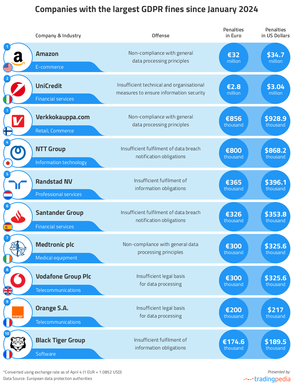 Citations: [1] https://www.skillcast.com/blog/biggest-gdpr-fines-2024 [2] https://truyo.com/gdpr-fines-in-2024-a-year-of-significant-penalties-and-trends/ [3] https://privacy108.com.au/insights/biggest-gdpr-fines-in-2024/ [4] https://www.infosecurity-magazine.com/news/gdpr-fines-total-2024/ [5] https://termly.io/resources/articles/biggest-gdpr-fines/ [6] https://www.edpb.europa.eu/our-work-tools/our-documents/topic/gdpr-enforcement_en [7] https://www.enforcementtracker.com [8] https://2b-advice.com/en/2024/11/02/the-five-highest-dsgvo-fines-in-october-2024/ [9] https://www.infosecurity-magazine.com/news-features/top-10-data-fines-settlements/ [10] https://gdpr-info.eu/issues/fines-penalties/ [11] https://2b-advice.com/en/2024/12/06/these-are-the-five-highest-dsgvo-fines-in-november-2024/ [12] https://www.dataguidance.com/resource/gdpr-enforcement-q3-2024 [13] https://www.infosecurityeurope.com/en-gb/blog/regulation-and-policy/top-data-protection-fines-settlements.html [14] https://dataprivacymanager.net/5-biggest-gdpr-fines-so-far-2020/ [15] https://www.digit.fyi/big-tech-in-the-firing-line-as-gdpr-fines-hit-e1-2bn-in-2024/ [16] https://www.dlapiper.com/en-us/insights/publications/2025/01/dla-piper-gdpr-fines-and-data-breach-survey-january-2025 [17] https://www.statista.com/statistics/1133337/largest-fines-issued-gdpr/ [18] https://www.iubenda.com/en/help/111204-the-biggest-gdpr-fines-to-date [19] https://cms.law/en/int/publication/gdpr-enforcement-tracker-report/numbers-and-figures [20] https://www.csoonline.com/article/3808871/gdpr-fines-reduced-in-2024.html