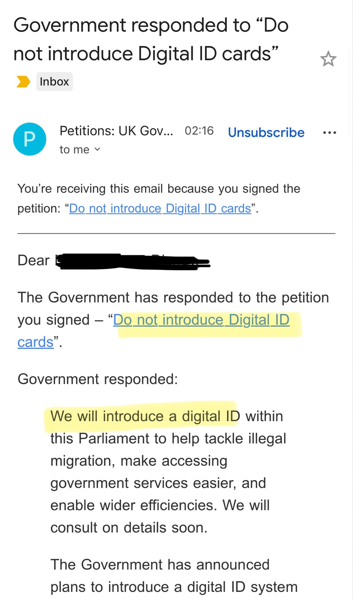 Petition: Do not introduce Digital ID cards