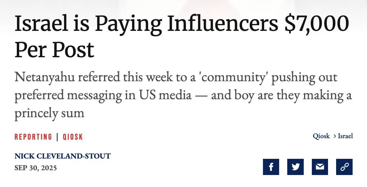 The question isn’t whether Israel has the right to advocate for its interests in the United States—it does, through proper diplomatic channels. The question is whether foreign governments should be able to covertly shape American public opinion by paying influencers to create content that appears organic but is actually purchased advocacy.